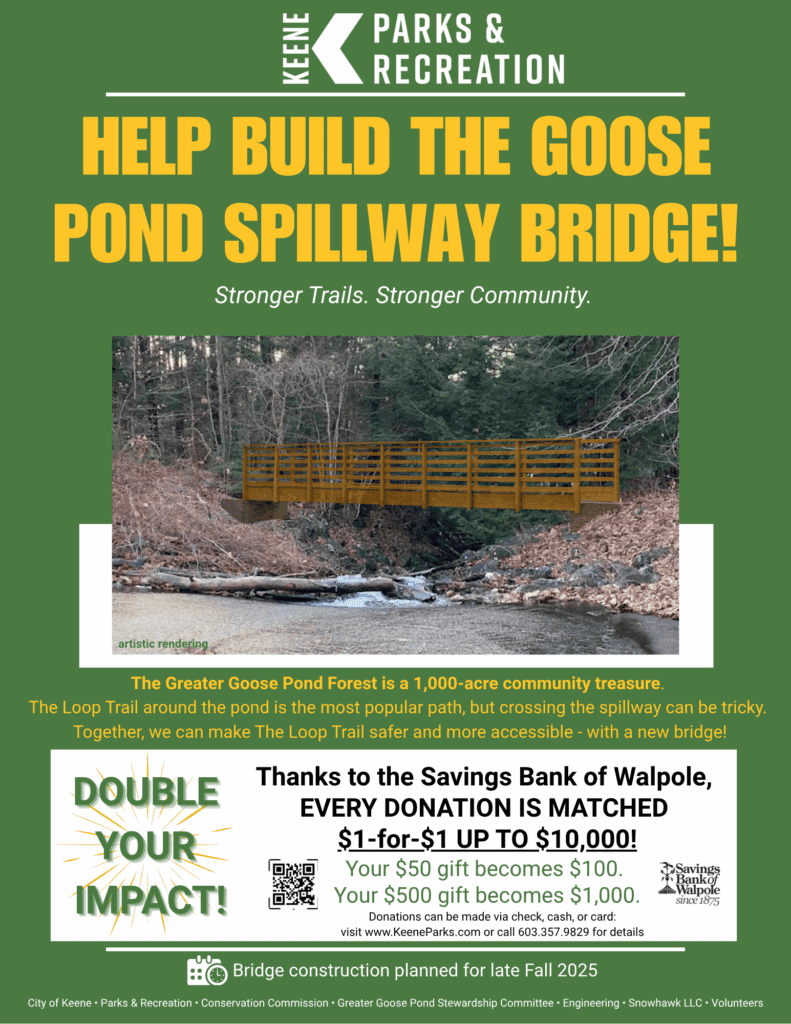 • Jonathan Daniels trail – This trail runs through Ashuelot River Park and is about .87 miles.