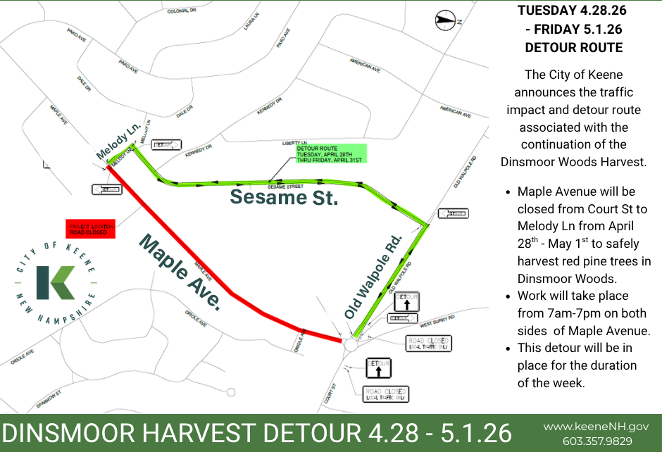 - Maple Avenue will be closed to thru traffic. Detour routes in effect: